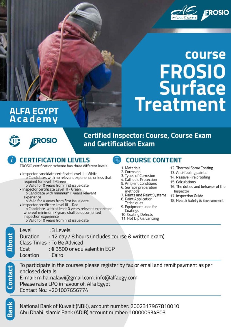 We provide technical training in painting inspection SSPC- FROSIO Further more providing specific training to under graduate students, applicators and more......