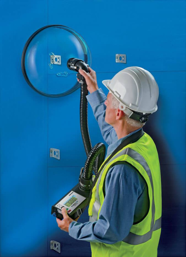 Quickly and easily detect air and water leaks in building envelopes and rigid air barrier systems. Ideal for testing penetrations (fasteners, masonry ties, etc.) and continuity of joints and seams in rigid air barrier systems.